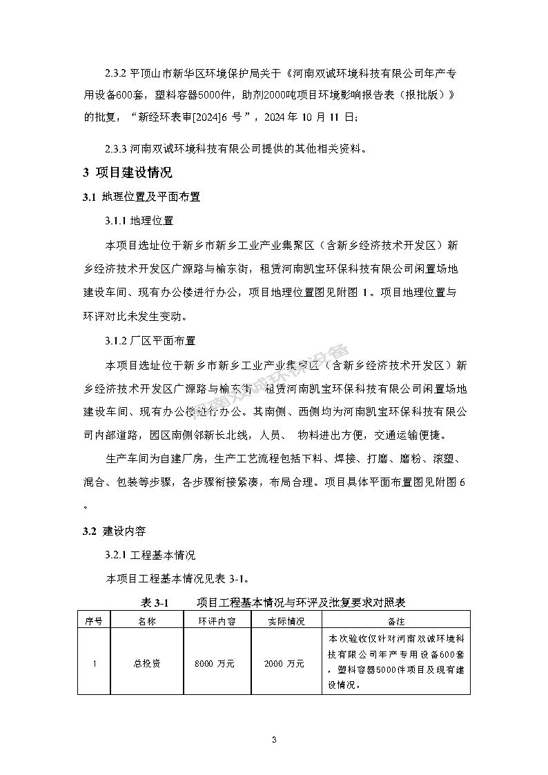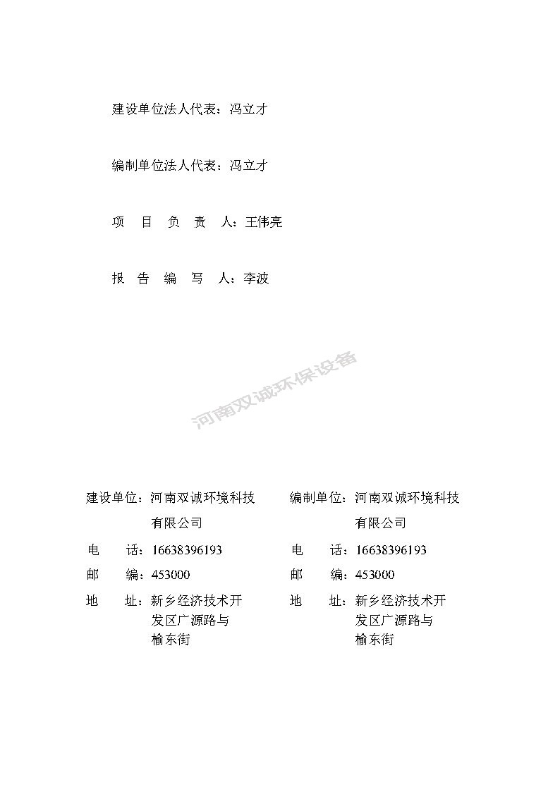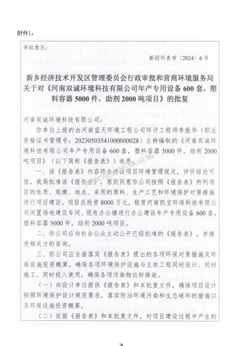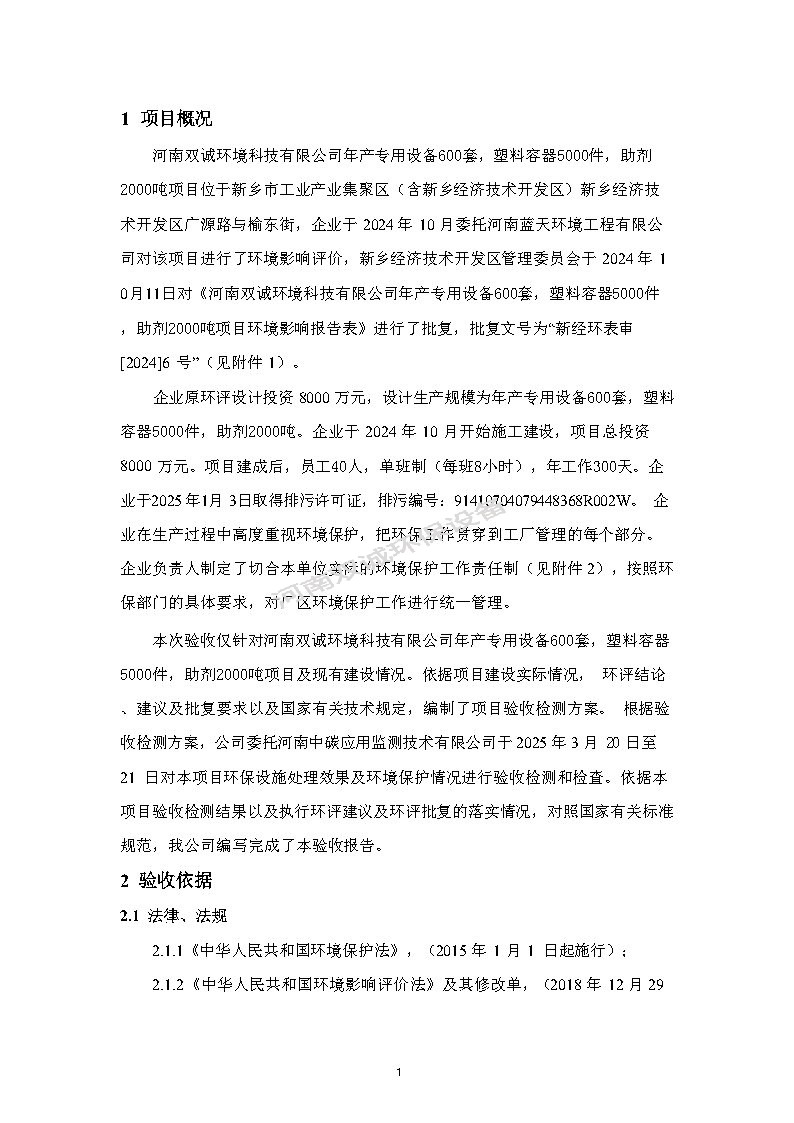 河南雙誠環(huán)境科技有限公司 年產專用設備600套,塑料容器5000件項目竣工環(huán)境保護 驗收監(jiān)測報告