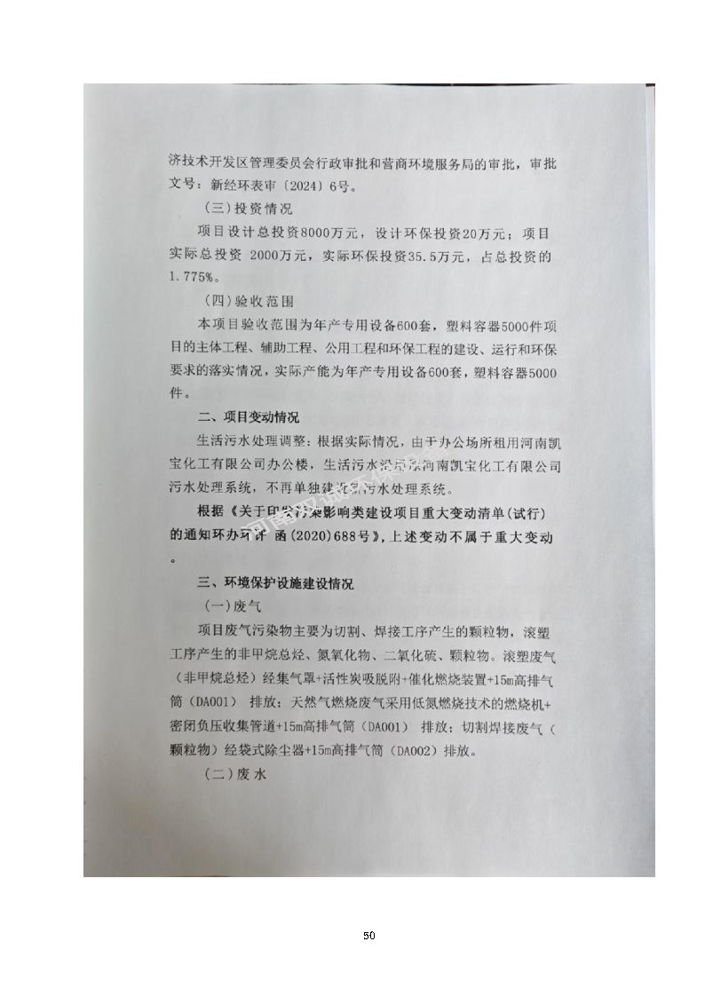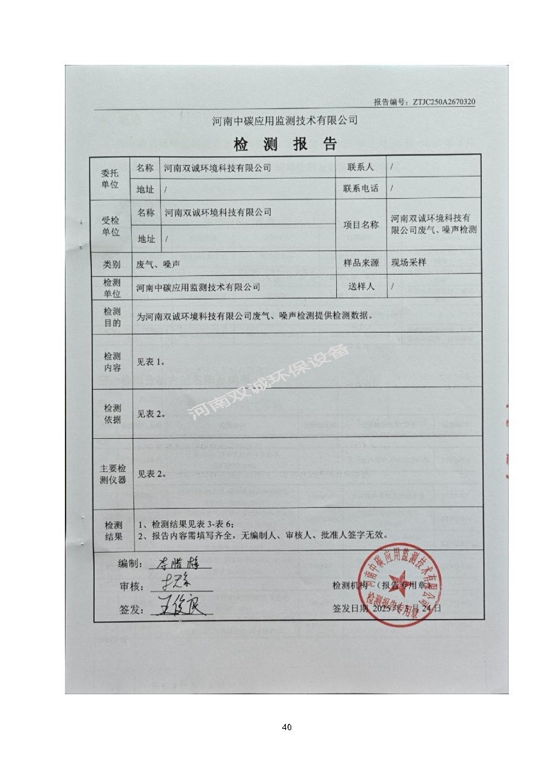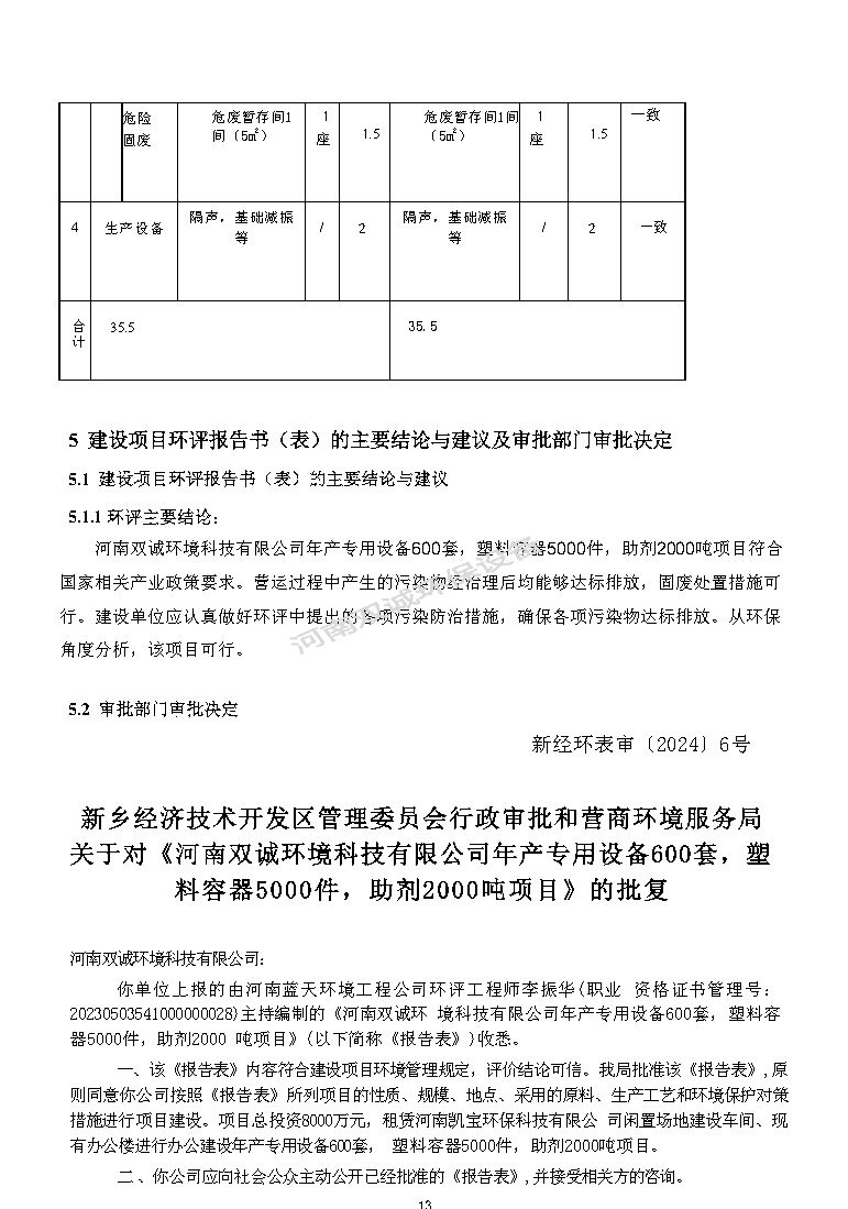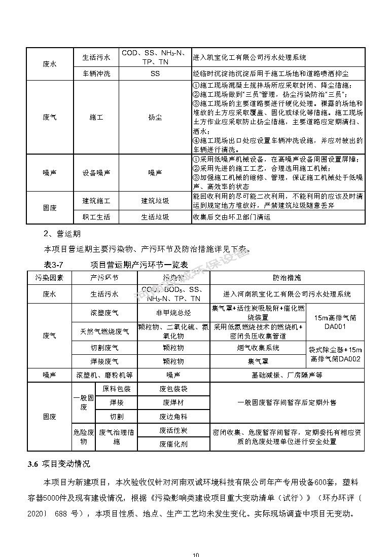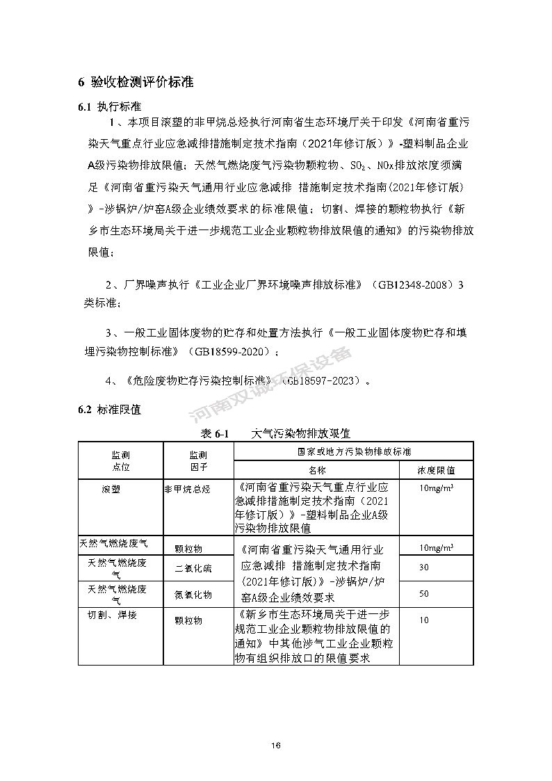 河南雙誠環(huán)境科技有限公司 年產專用設備600套,塑料容器5000件項目竣工環(huán)境保護 驗收監(jiān)測報告