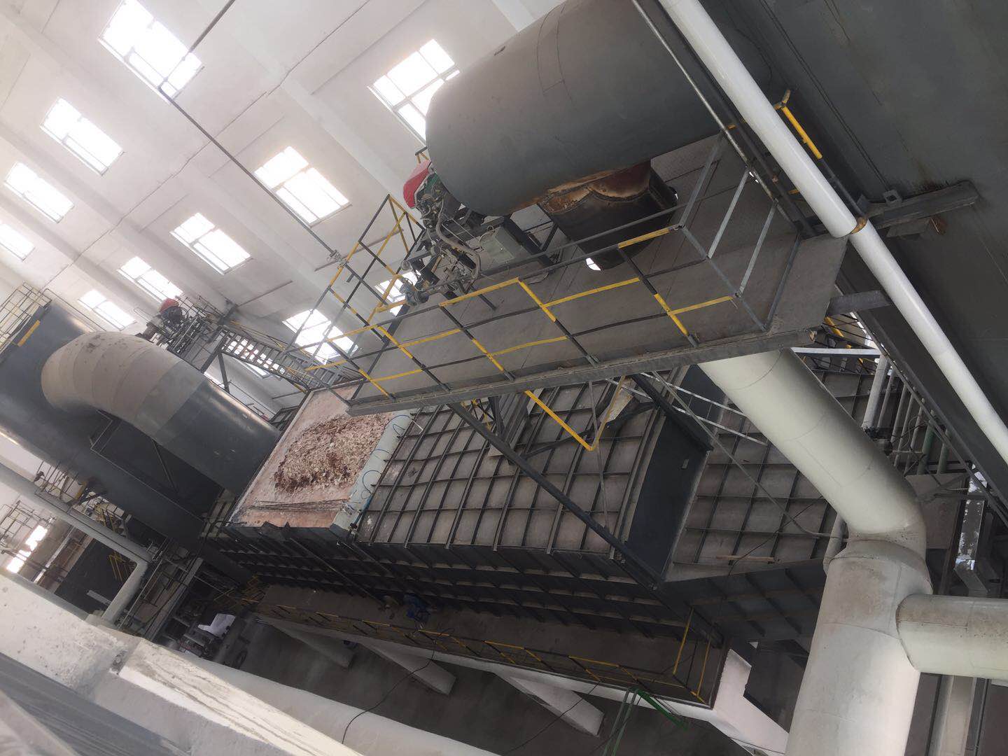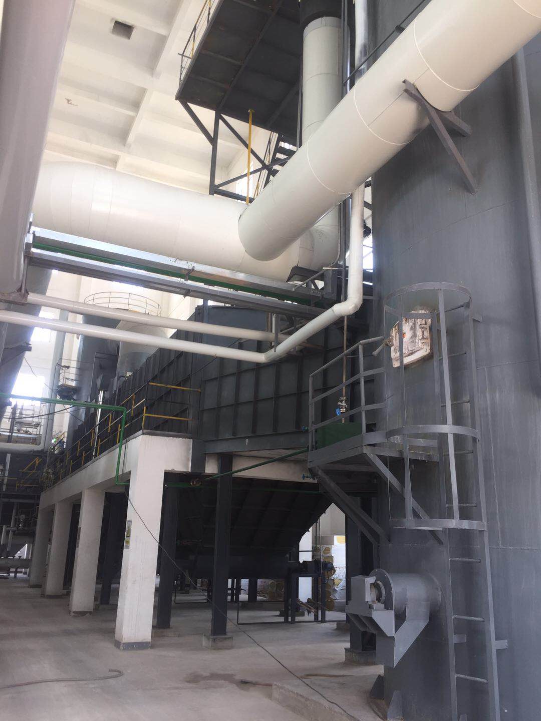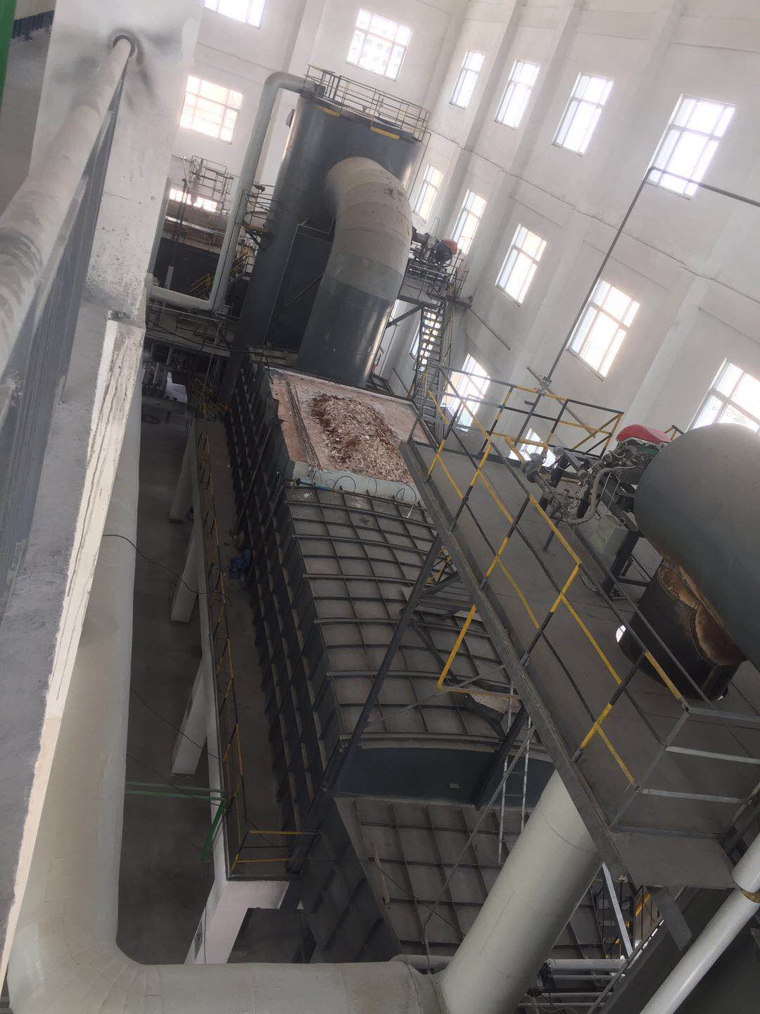 經過預處理的廢液、固廢或廢氣由進料裝置進入一次燃燒室,廢料與助燃空氣在焚燒爐爐膛內經過復雜的物理、化學反應,使廢料中的有害物質徹底分解,焚燒溫度控制在750-800℃(不同的物料焚燒溫度不同);產生的煙道氣進入迷宮沉降除塵器除鹽(底部自動出鹽),然后進入二級燃燒室進行高溫焚燒,二級燃燒室內焚燒溫度控制在1100℃左右,產生的高溫煙道氣經SNCR脫硝后,進入余熱回收裝置,高溫煙道氣的部分熱量轉化為蒸汽回收,煙氣溫度降至550℃左右,之后進入G-G換熱器與煙氣再加熱器1的熱側,為補燃空氣預熱和將布袋除塵器出來的煙氣再次升溫至脫硝所需溫度,同時煙氣降溫至500℃左右,(根據國標要求:為避免二噁英的再次合成,煙氣要在1S內從500℃左右降至200℃以下),煙氣進入半干急冷塔降溫至200℃以下,經布袋除塵后,煙氣經煙氣再加熱器1加熱升溫至350℃左右,通過SCR脫硝,進入煙氣再加熱器2熱側作為熱源加熱汽水分離后的煙道氣,之后進入噴淋吸收塔脫除酸性氣體,且再次降溫至75℃左右,進入汽水分離器脫水后,經過煙氣再加熱器2的冷側被加熱至120℃左右經煙囪外排。