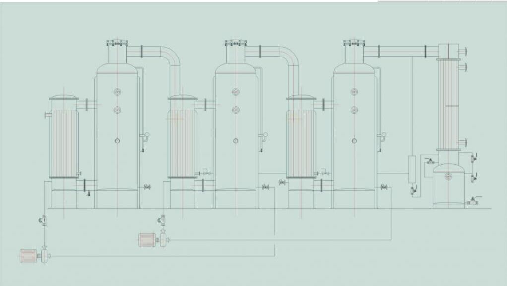 適用范圍降膜式單效、雙效、三效、四效、五效、六效、 七效、八效蒸發(fā)器,適用于牛奶、葡萄糖、淀粉、 木糖、制藥、化工、生物工程、環(huán)保工程、廢液 回收等行業(yè)進(jìn)行低溫濃縮,特別適用于不易結(jié)垢 易蒸發(fā)或熱敏性強(qiáng)的溫料。系統(tǒng)組成各效蒸發(fā)器、各效分離器、冷凝器、熱壓泵、真 空及排水系統(tǒng)、各效料液、輸送泵、操作平臺(tái)、 電器儀表控制柜及閥門、管路等系統(tǒng)組成。